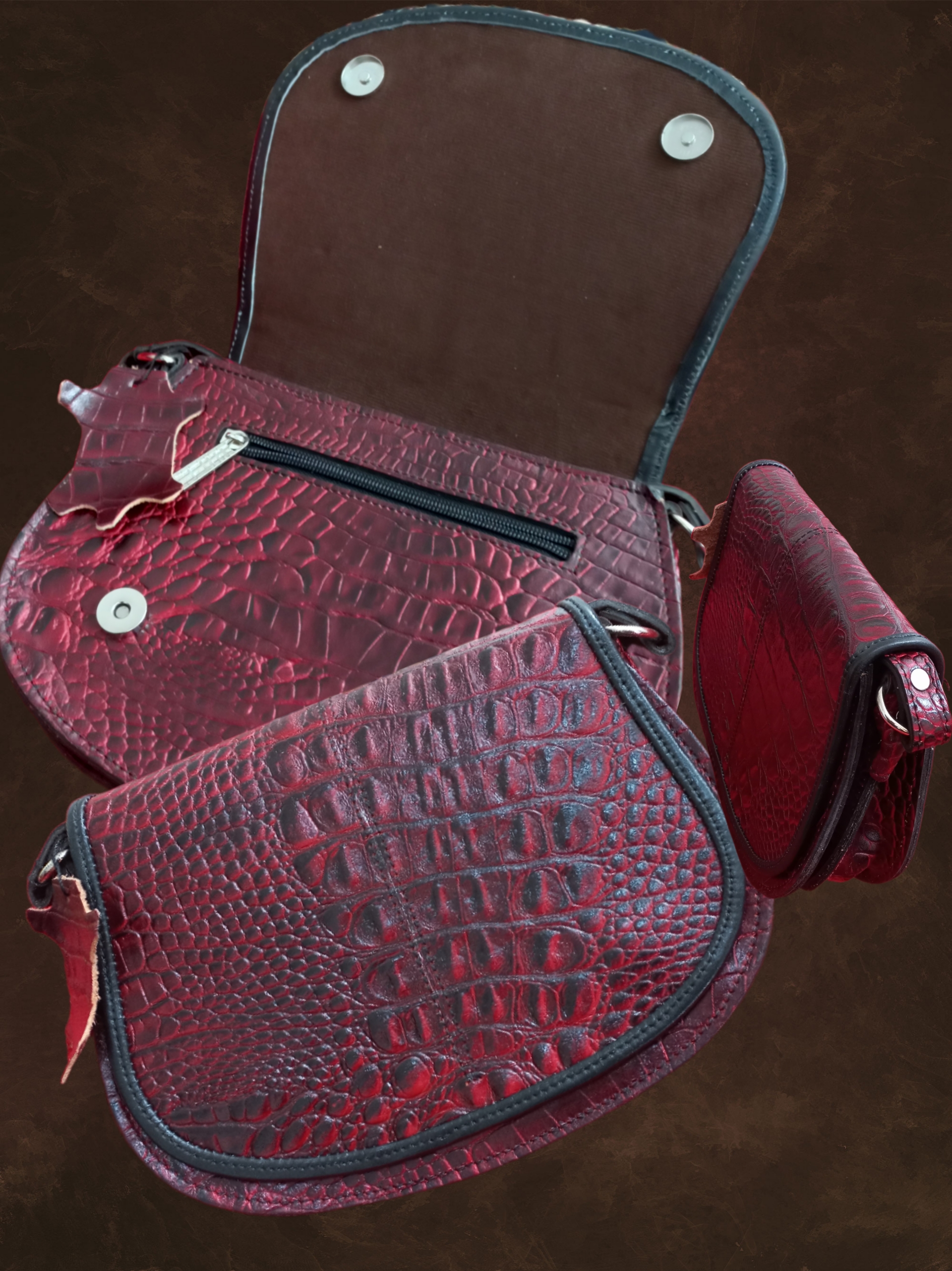 کیف چرم طبیعی گاوی مدل کورکودیلی بسیار شیک در چند رنگ زرشکی، عسلی